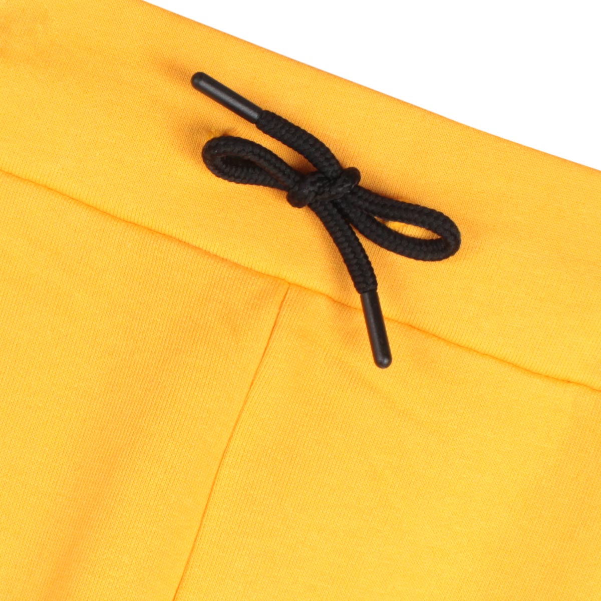 ファスナー式のポケットが左右につき、左ひざにはロゴが刺繍されています。