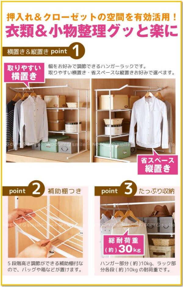 【商品説明】 押入れ、クローゼット等で幅広く活用できて 横置き&縦置き自在のハンガーラックです。