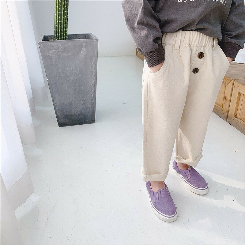 送料無料パンツ ボトムス キッズ 子供用 女の子 男の子 長ズボン ロング ボタン 無地 股上深め おしゃれ かわいい パープル