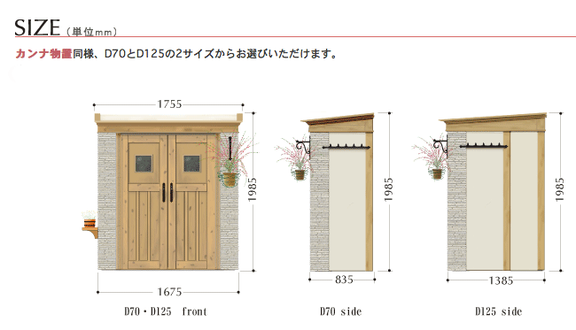 70cmタイプ→ 【ディーズシェッド・カンナフォルテD70】 ※施工例の写真はプロバンススタイルのカンナです。